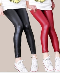 Pantaloni in pelle PU per ragazze all'ingrosso pantaloni Skinny per adolescenti per bambini Leggings in collant di colore puro etĆ 4-12 anni